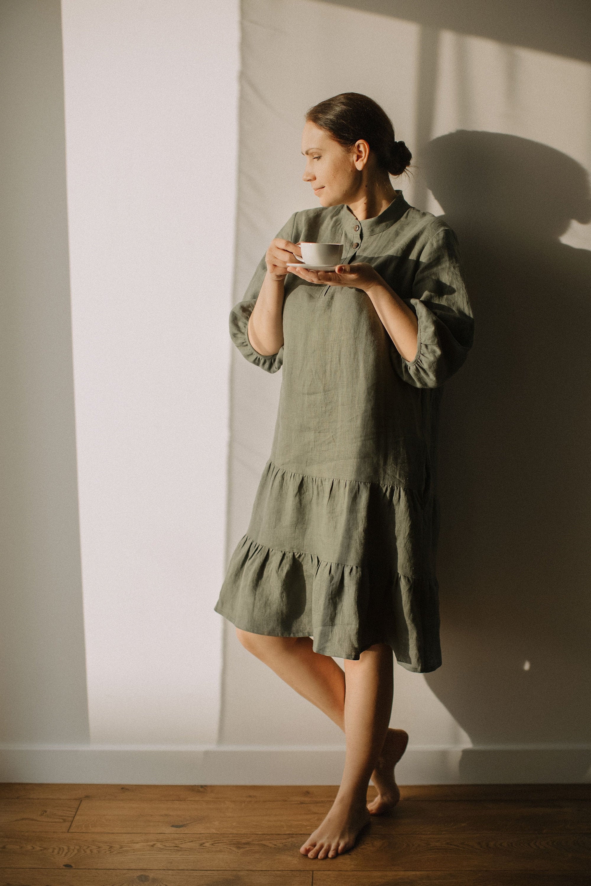 Plus Size Leinenkleid In Moosgrun Bio Leinenkleid Fur Frauen Etsy De